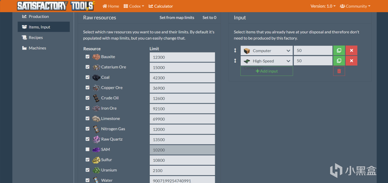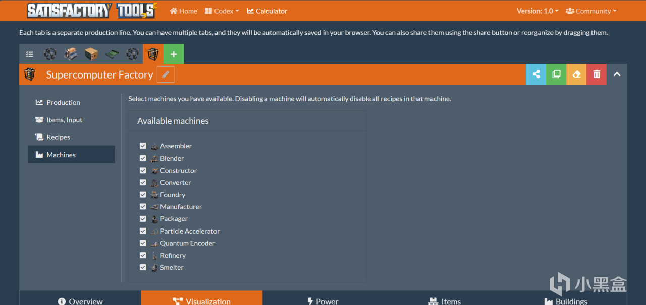 一,Machines栏可以勾选你解锁的机器,适合中期规划产线禁用粒子机和转化机