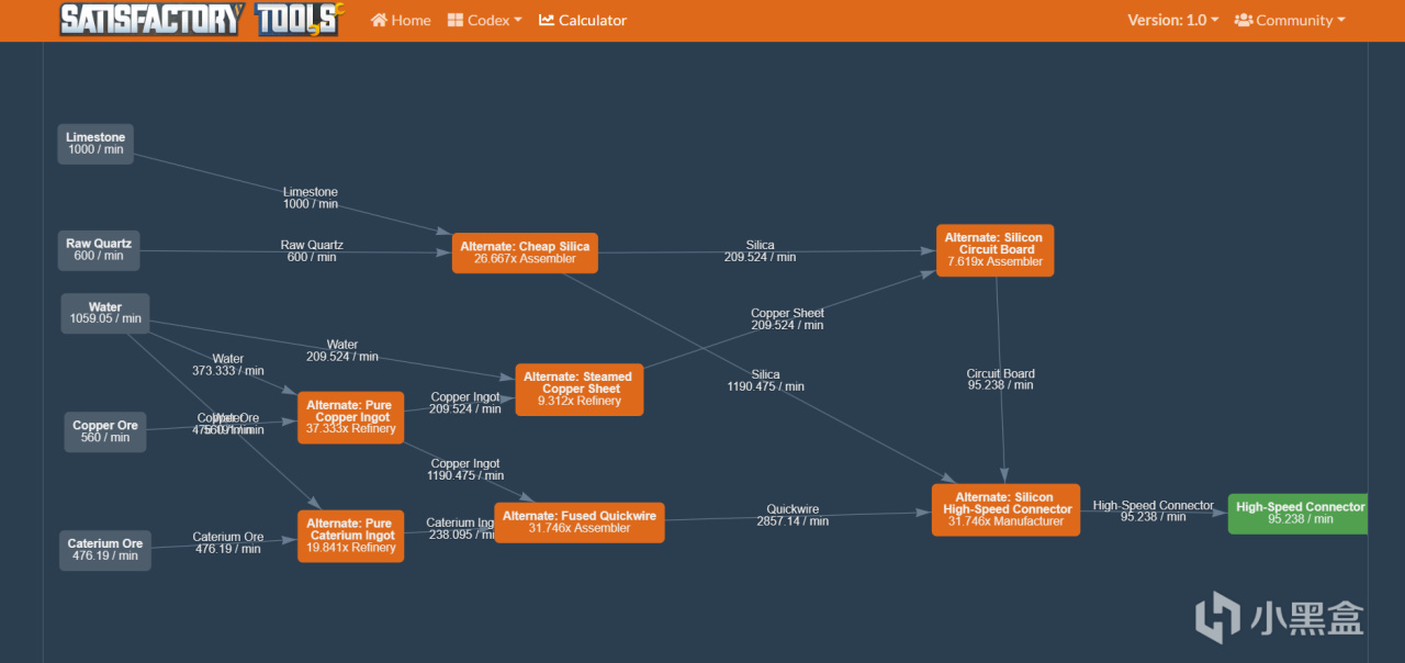 网页就会根据你的底线资源来计算最大化产线,比如我这里制约我产线规模的是石英。