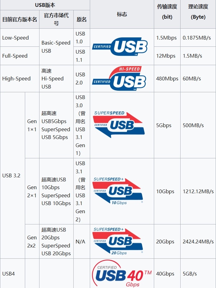 现在市面上流通的USB包括USB2.0、USB3.0(USB 3.1 Gen 1/USB 3.2 Gen 1×1)、USB 3.1 Gen 2(USB 3.1/USB 3.2 Gen 2x1)、USB 3.2(USB 3.2 Gen 2x2)。