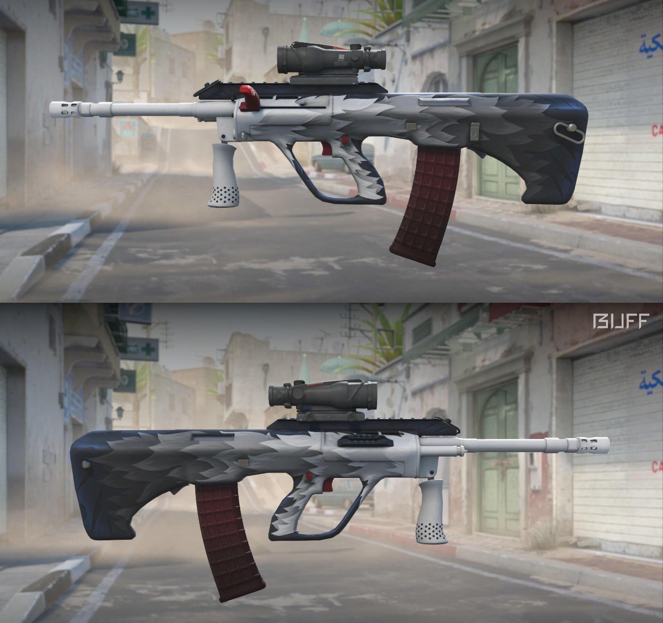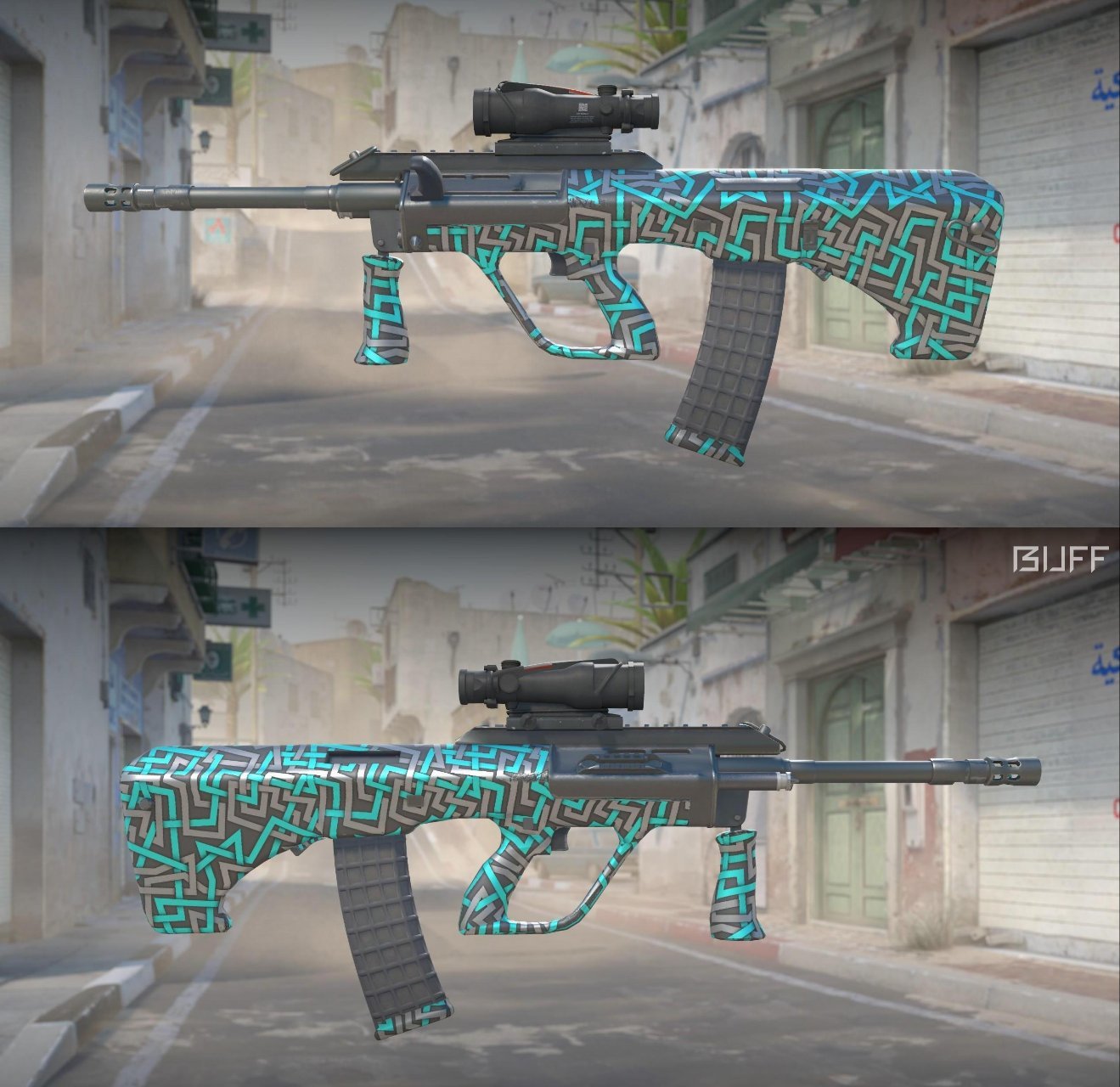 由許多跳脫的線條組成的一款皮膚,較爲喫磨損,推薦嶄新或者略磨入手,可考慮暗金