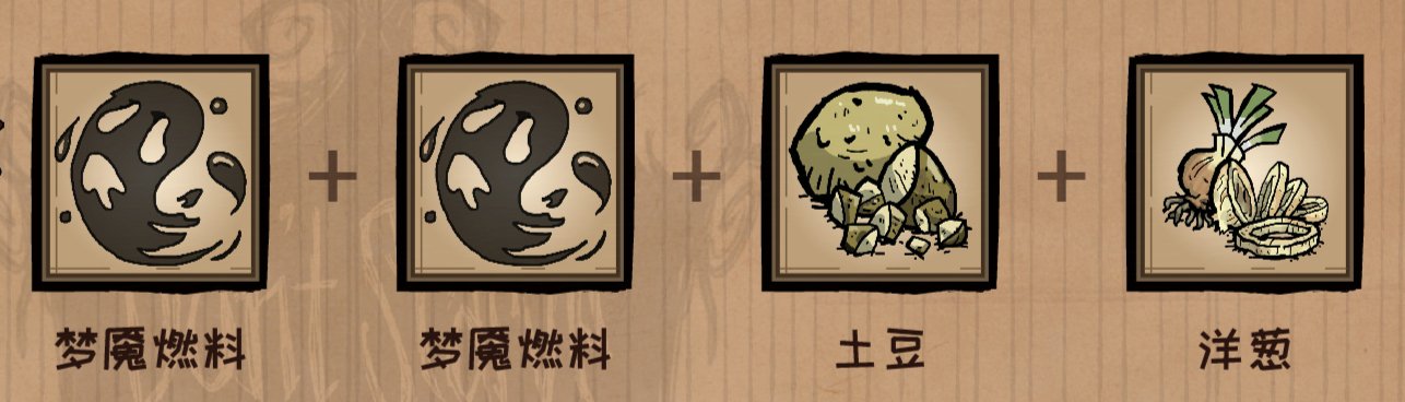 條件:2個噩夢燃料,1個土豆,1個洋蔥