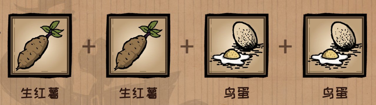 條件:2個怪物肉,1個蔬菜,1個蛋類