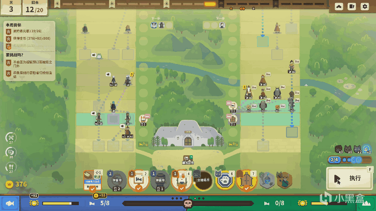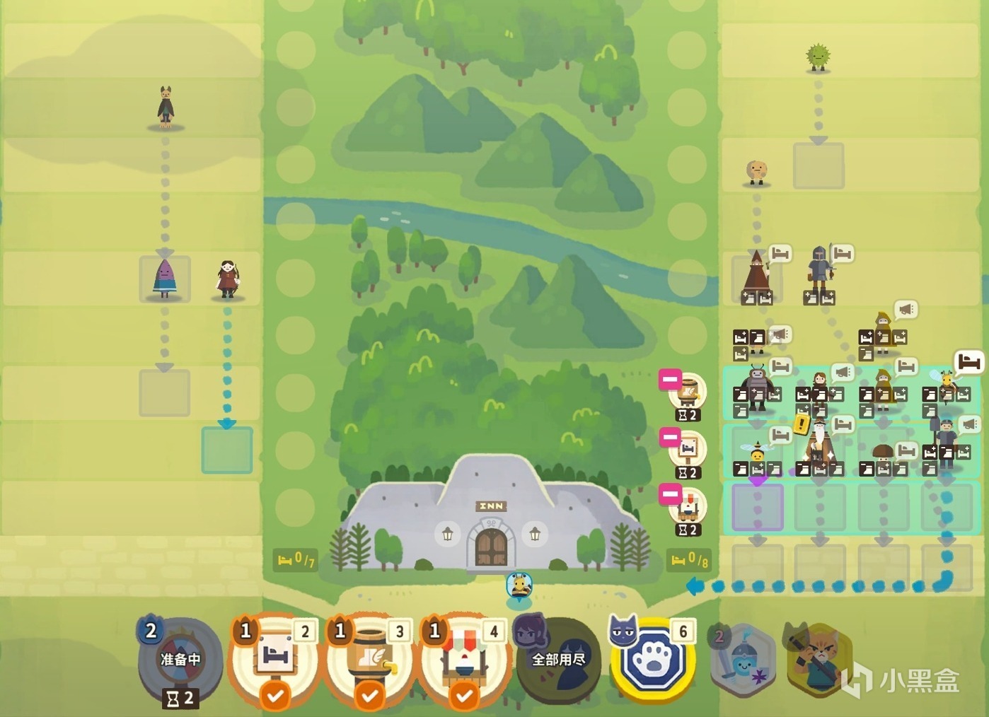好消息在於:在《莎拉的黑店》,這個讓本來無意住店的顧客強行投宿的過程,變簡化爲一個開店的廣告牌——但是它只持續2回合,而CD有3回合,且冒險者會從左右兩側同時來到,所以你需要仔細斟酌放下廣告牌的最佳時間,以達到最好的接客效果。