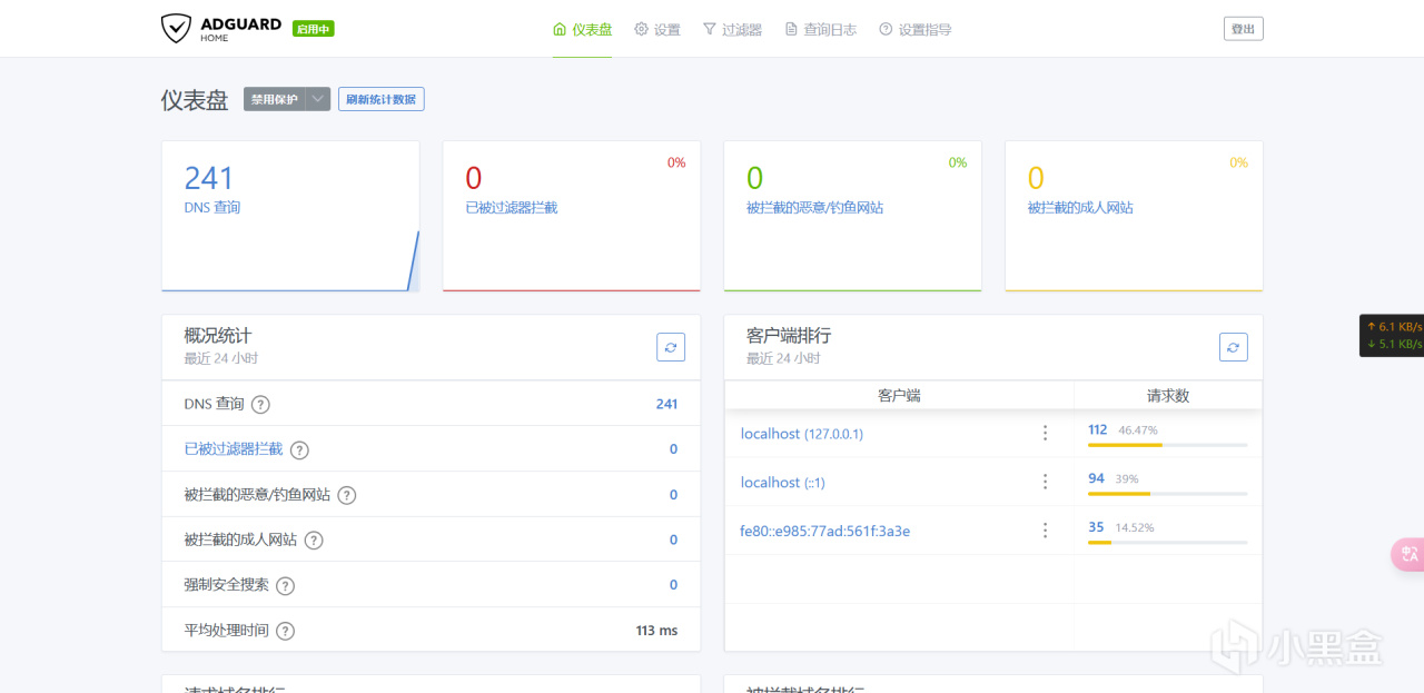 AdGuradHome本身自帶一些過濾規則,但是並不完善,所以需要配置一些自定義規則來達到最佳效果,建議訂閱別人配置好的規則。