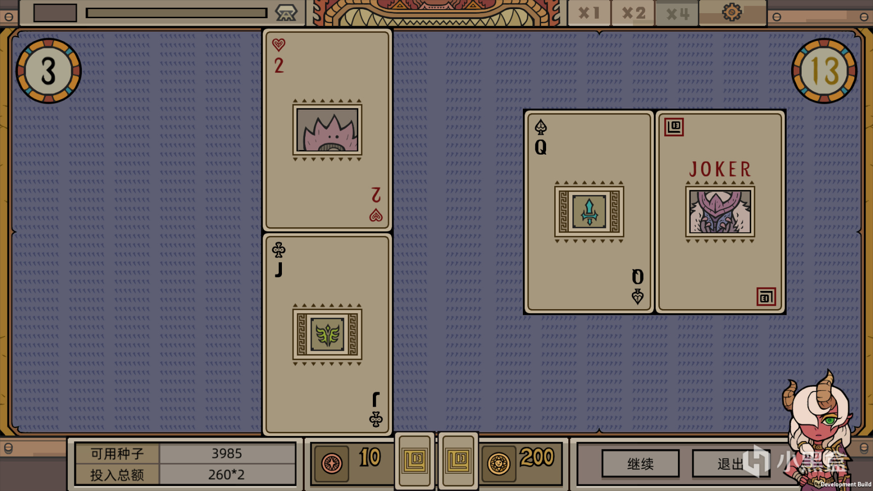 买定离手后,你需要与其他7位领主两两进行1v1战斗,胜者晋级,败者淘汰。牌面从1到K,JOKER则是BOSS,谁能锁定13点谁就拥有更大的取胜几率。为什么是几率?因为根据布局和怪物不同,即使是相同的点数,也会有着不同的结果!