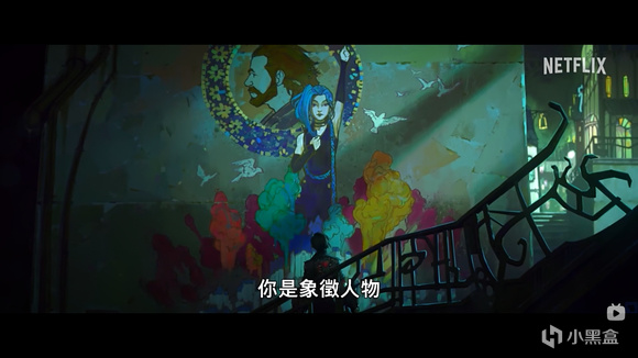 而金克丝的成长就在于她终于能摆脱自我的内耗,不再无限地朝外索取爱,而是对外释放爱,所以当她为了祖安人民的自由呼吸而战的时候,她跃起的身影与背后的风神迦娜重合,此刻的金克丝就是风神在祖安的代言人,是祖安人民新的希望。她重现了风神的神迹,所以金克丝能统一整个祖安,将大家团结起来。