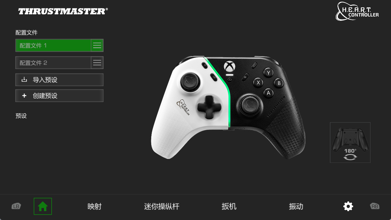 HEART還擁有一個本地化做的非常不錯的驅動,驅動通過微軟商店即可下載,軟件不僅支持中文,在設置方面也非常直觀,比如搖桿死區、曲線調節,方圓切換。扳機虛位,震動力度等。也希望其他第三方廠商可以學學,中文界面的驅動+中文說明書我們真的很需要!