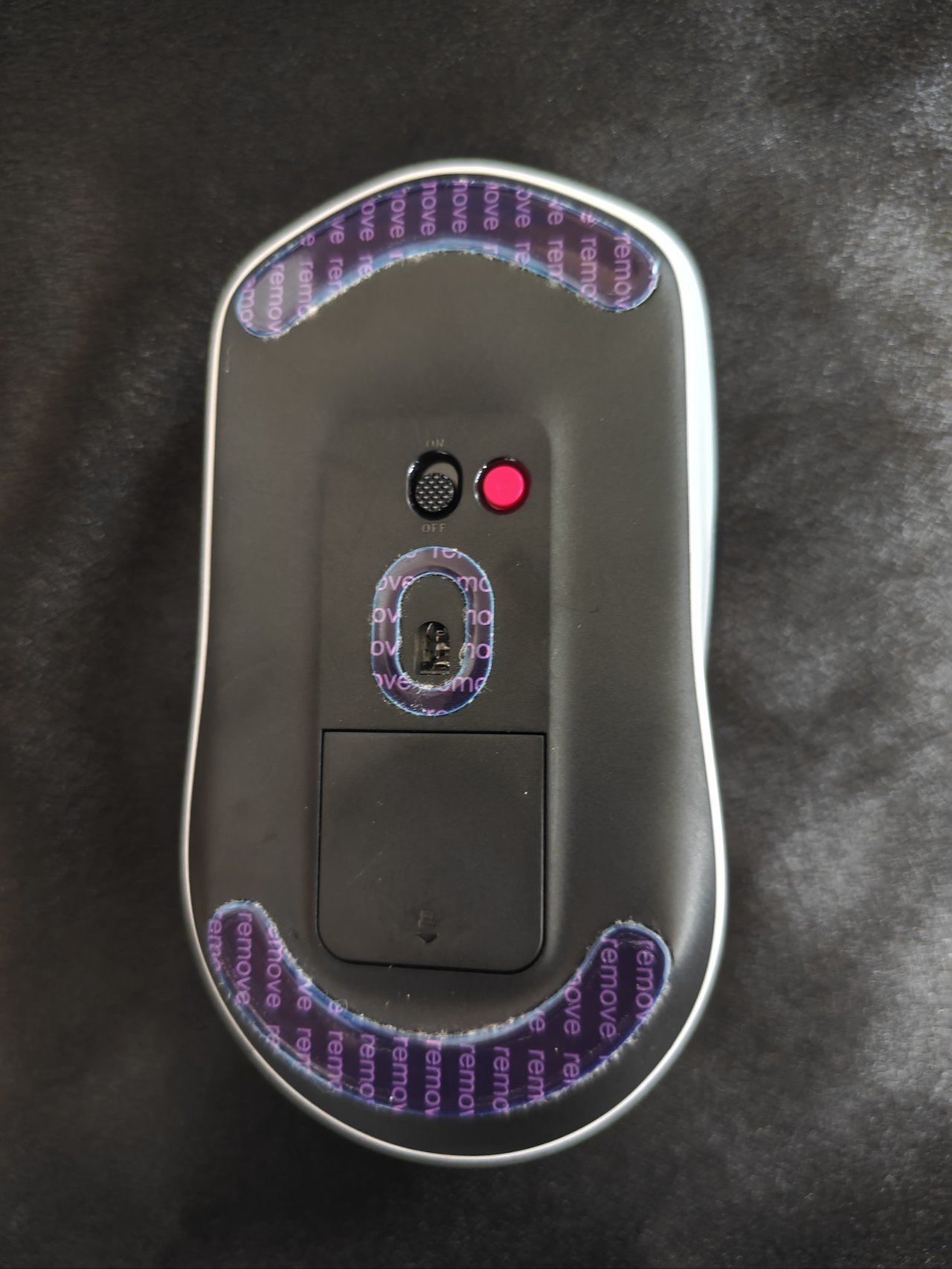 上方的两个按钮分别为电源开关以及自定义按钮,设计在底下能很好的起到防误触的效果~下方则有最巧妙的2.4G接收器收纳仓,放在这里妈妈再也不用担心我会弄丢啦~这个收纳仓的位置还能拆开放置另购的无线充电模块,起到给鼠标无线充电的效果。
