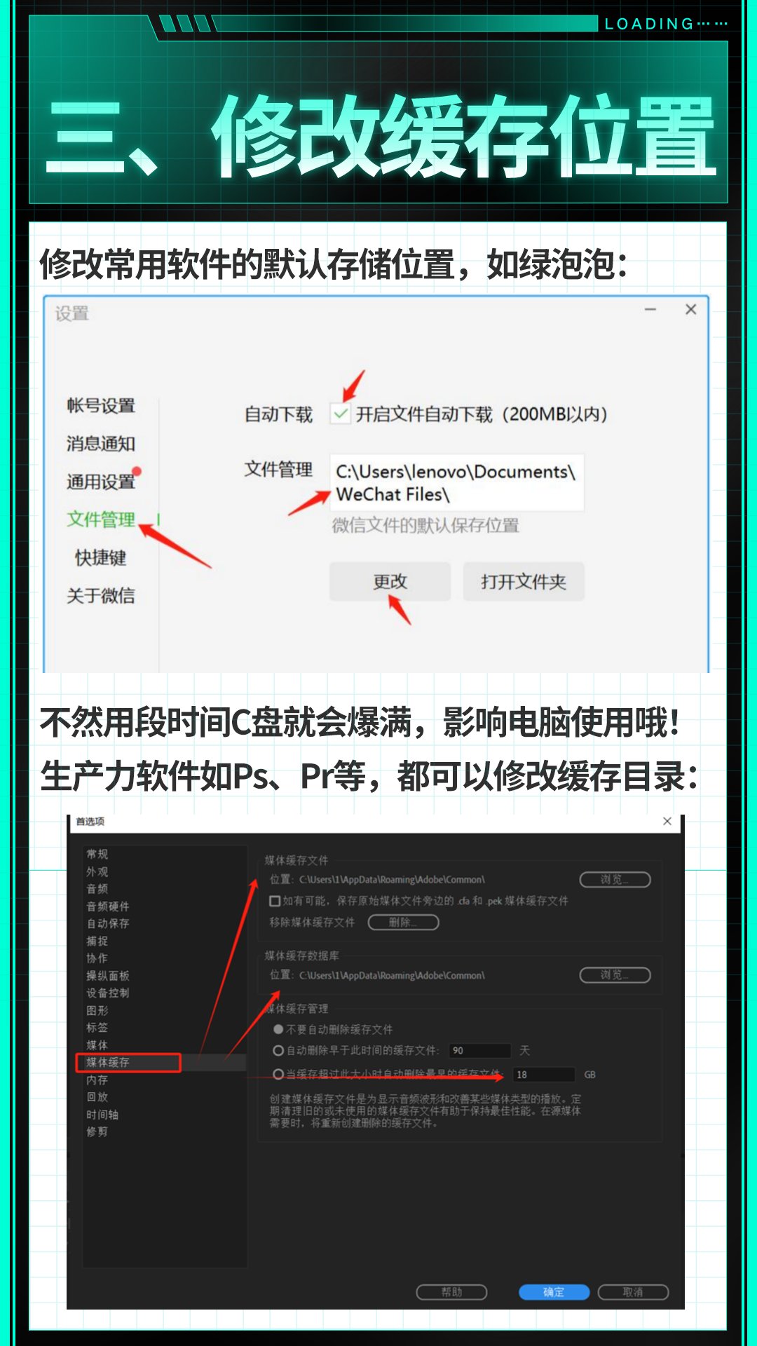 P6:修改软件的缓存位置,避免C盘爆满影响后期使用。
