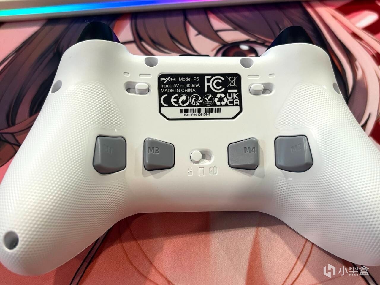 背部則是四個自定義宏按鍵,以及三模切換開關,這也算是國產手柄的標配了,同時在握把處做了防滑紋的處理,長時間握持也絲毫不會累手。