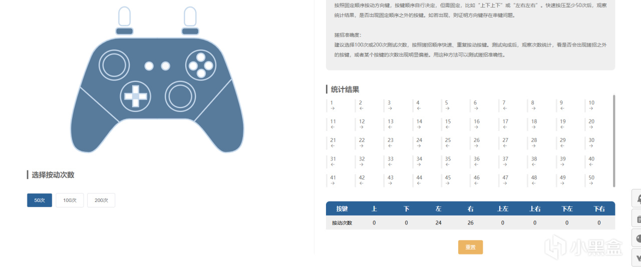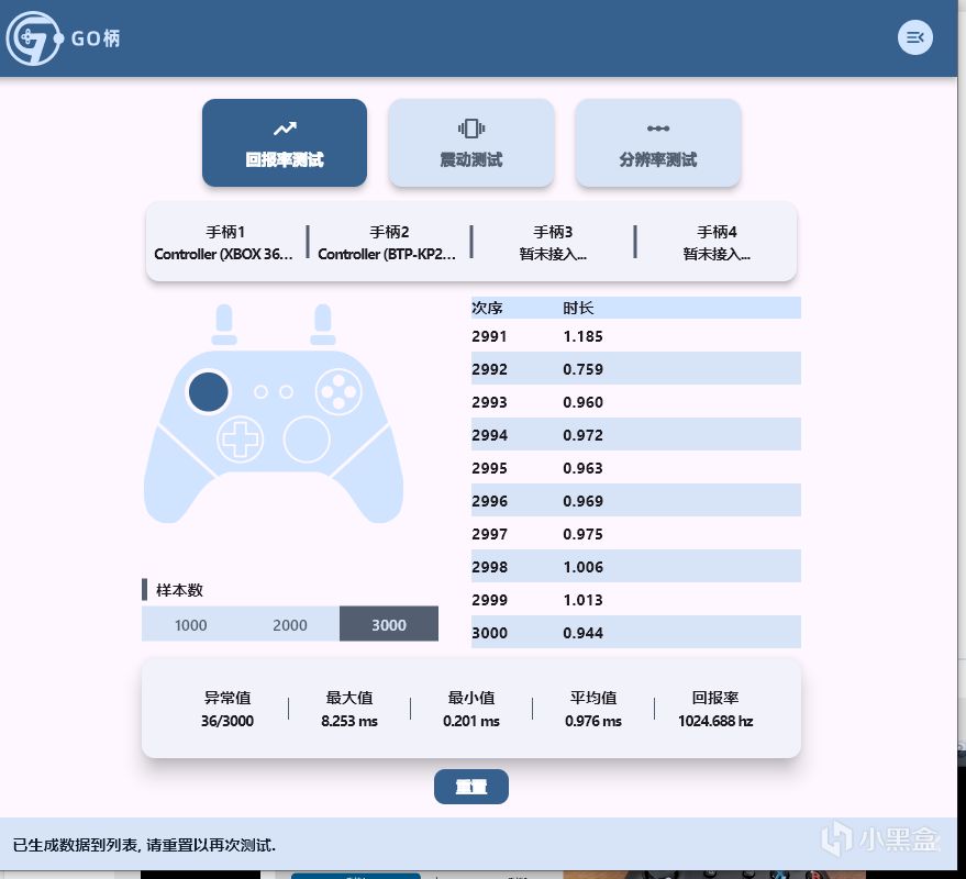 這次使用的依舊是專業的手柄測試網站 GO柄的數據