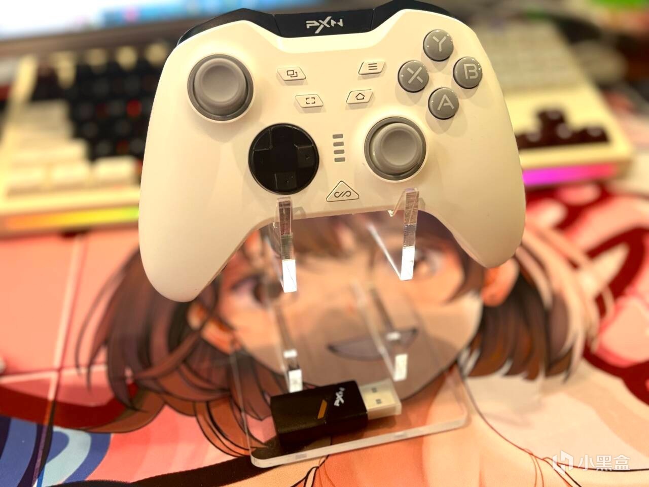 打開之後發現包含的東西並不算多,正上方是一個手柄和接收器,下面則是放着說明書以及數據線,這一次的承影總共有兩種配色,分別是耀月白以及騎士黑,我的這款爲耀月白,整體雖然是白色基調,但是頂部的一體式肩鍵做了純黑色的處理,有點撞色的感覺,還挺帥的,不過它可不僅僅只是帥,接下來進入正題吧。