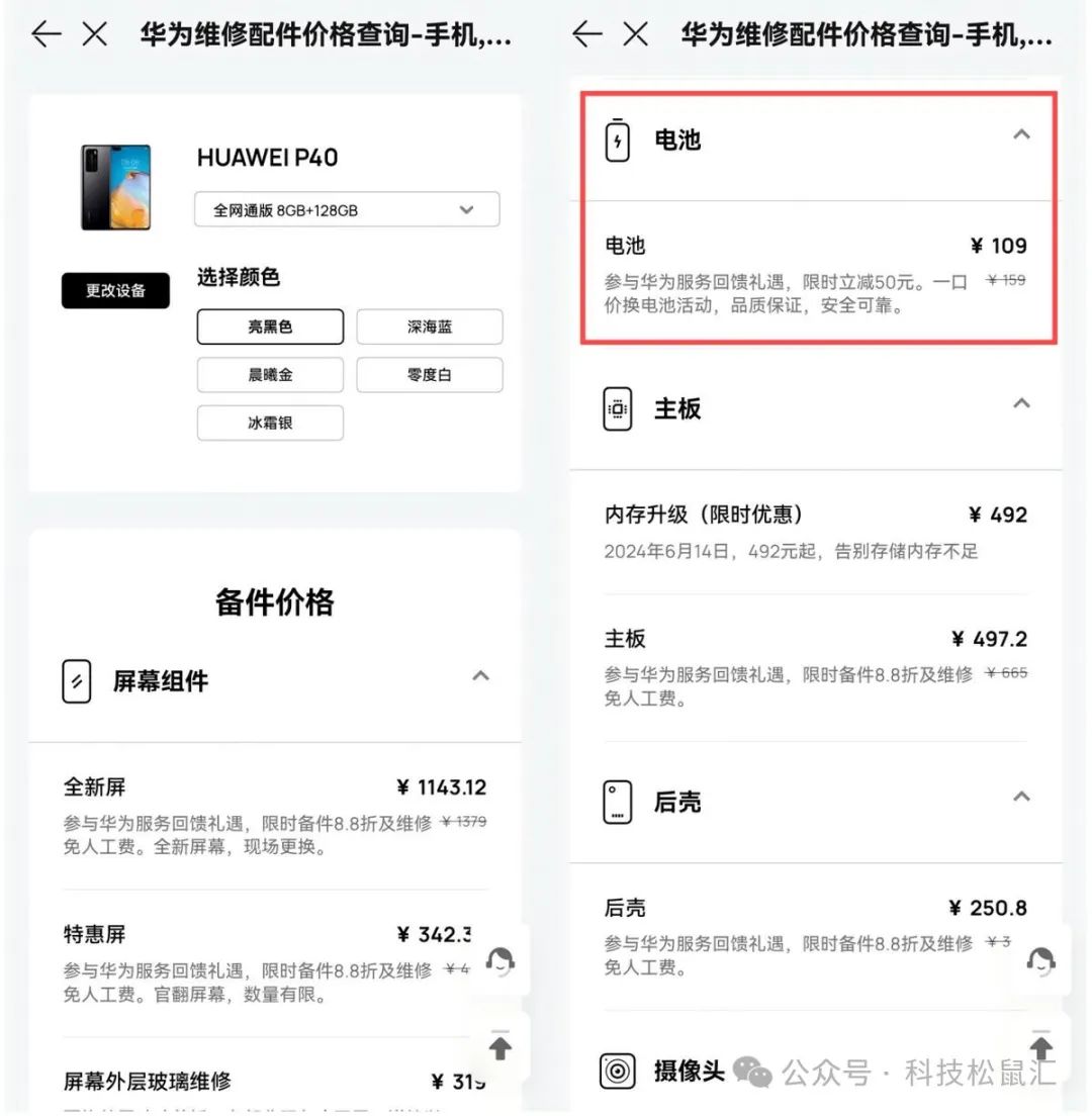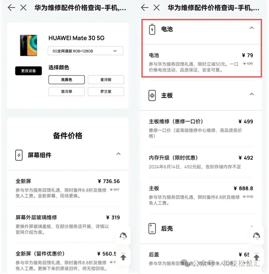 華爲官方換電池立減50,對於衆多mate40系列、P40系列和mate30系列的老用戶而言真的很貼心,這3個系列目前有幾千萬老用戶,手機用着依然很流暢,而電池健康度普遍大降,續航時間短影響了整體的使用體驗,mate30只需花79,mate40和P40也只需花109即可換一款新電池,顯然是小投入大回報。如果手中的華爲手機電池健康度低於85%,那麼建議你抓住機遇,活動期間去官方售後換電池,不同的機型價格不同,大家可以通過我的華爲查詢具體的價格。