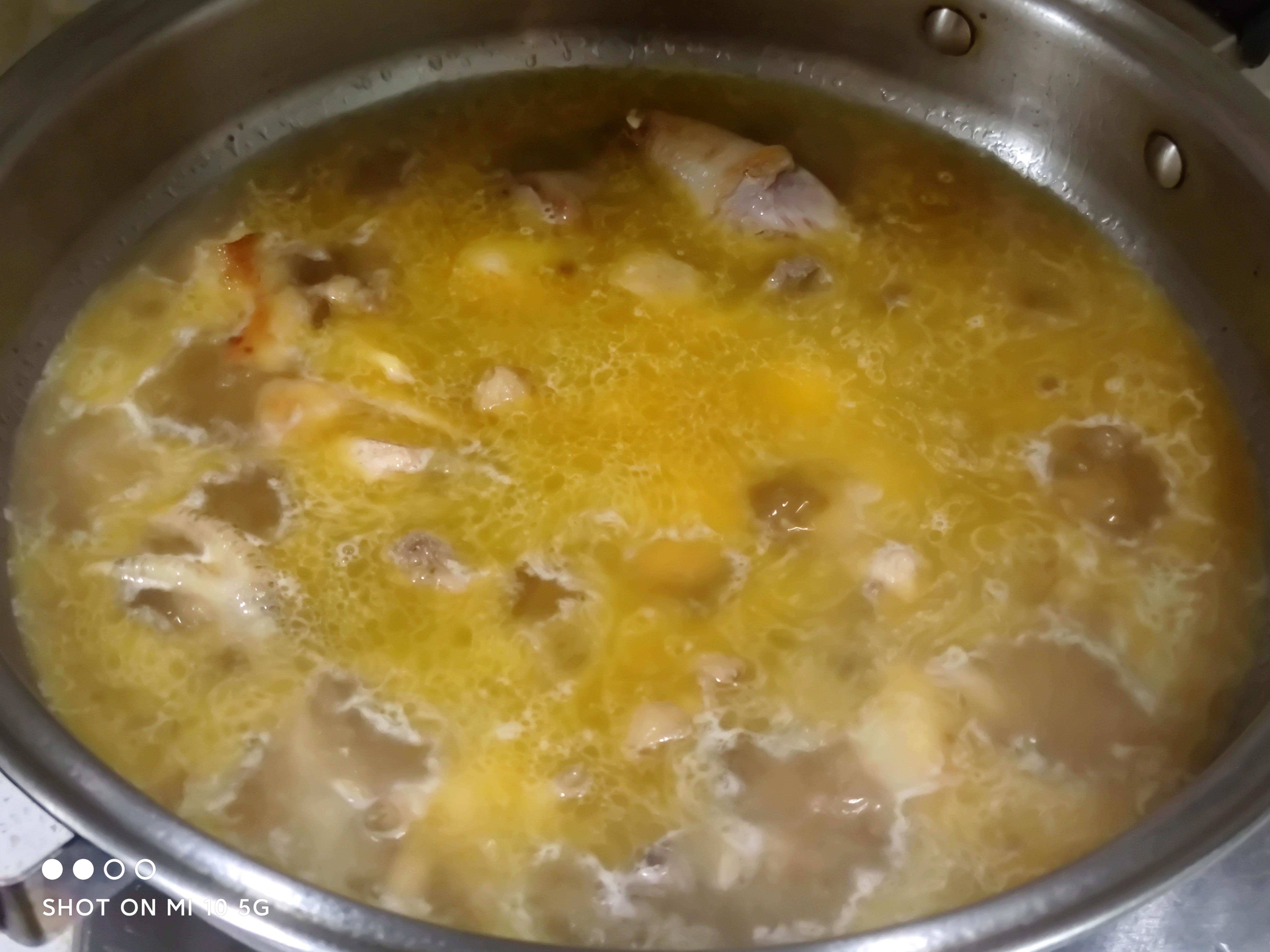 1小时后开锅,加入香菇,和“鸡蛋”,稍微补一些开水,加入盐调味,继续炖20分钟。