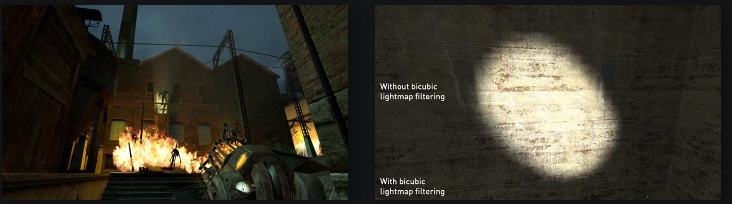 - 得益于新的双三次光照贴图过滤(bicubic lightmap filtering),游戏可在“非常高”的着色器细节设置下实现更为平滑的光照贴图阴影!