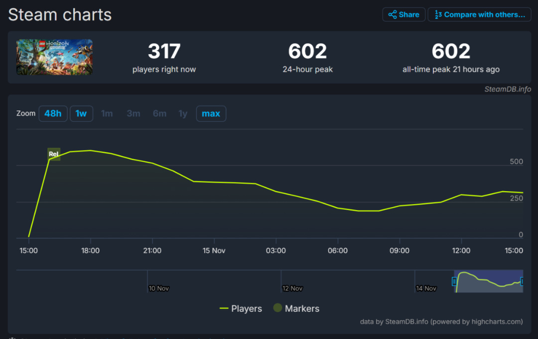 可能是標準版398、豪華版483的定價過高問題,本作steam首發表現不如《星鳴特攻》,後者steam首日最高有607人同時在線。