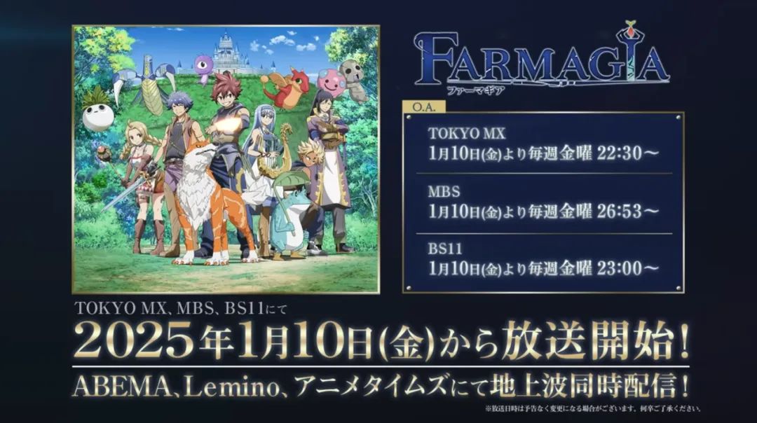 本月早些時候推出的種田動作遊戲《魔農傳記FARMAGIA》改編同名動畫,將於2025年1月10日開播。