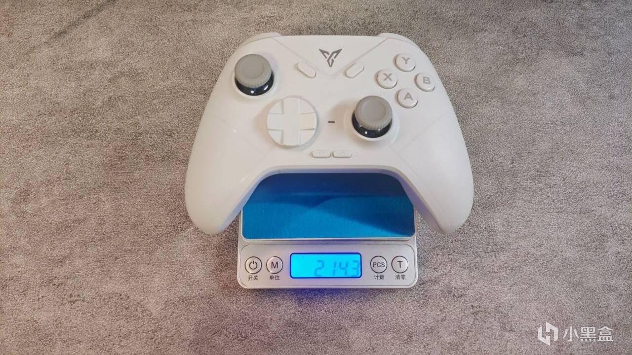 手柄尺寸爲155*103*65mm,重量在214g左右,電池容量爲800mAh,握持感還是比較舒適的。