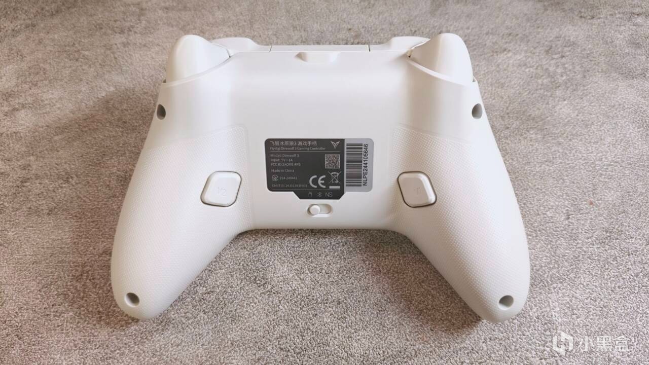 外觀方面,冰原狼3以灰白色爲主色系,正上方是飛智手柄的LOGO,整體上保持了與2代外觀的一致性,硬要說差別的話就是,二代搖桿的內部是白色的,3代由於升級了搖桿,其內部也就變成了深藍色。