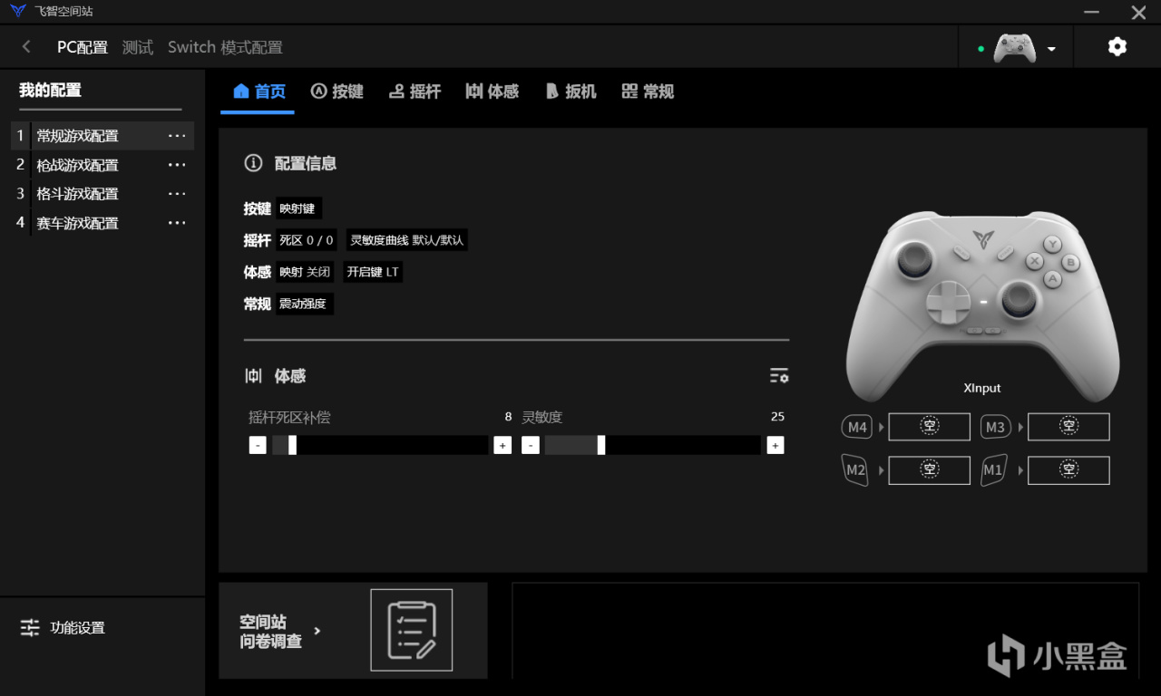在飛智的官方空間站,還能進行各種豐富的自定義功能,如自定義背鍵映射,搖桿死區及手柄震動強度等設置。通過調整手柄的各項參數,在面對不同類型遊戲時預設對應配置。