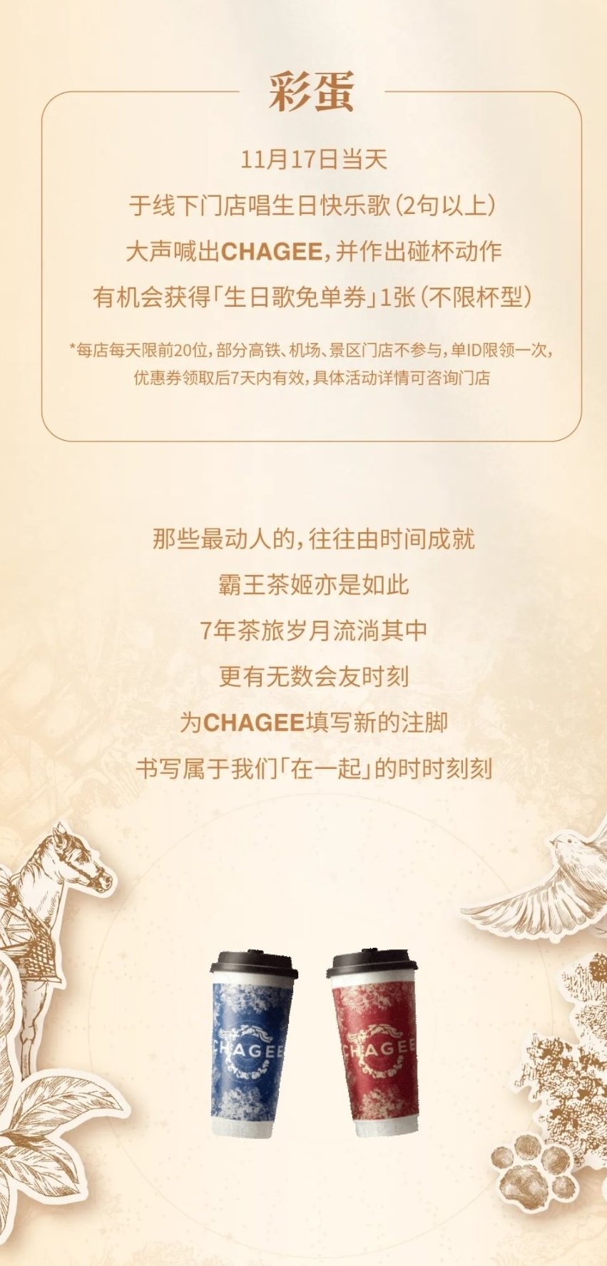 作爲一個霸王茶姬的忠實粉絲,參加活動怎麼可以少的了我,給大家整理了以下霸王茶姬七週年的活動,大家可以按需參加