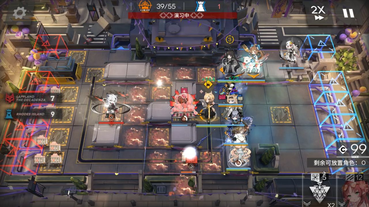 灵知可换铃兰等减速打手,目的是为了在最后2个减阻挡的怪来的时候能让塑心来得及真伤打死。烟花3个竖线图案。号角换个挡4重装或者减速地刺特种。依次部署煌朝下,奶羊朝上,塑心朝上,山,小羊朝上,lgs朝右,流明朝右,灵知朝下挂机到结束。第一次放烟花的时候,突袭煌阻挡挡3的怪,小怪到煌那边刚好返回冲向烟花。