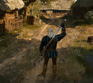 當然,也有一些遊戲爲了消除違和感,會設計一些更符合真實物理法則的動作。比如《巫師3》中,傑洛特收拔劍時會用另外一隻手輕推劍鞘,使劍柄和肩膀形成一個基本夾角。