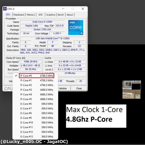 超频团队JagatOC的成员Alva "Lucky_n00b" Jonathan就搞到了一颗零售版的i5-13500,并进行了简单测试。