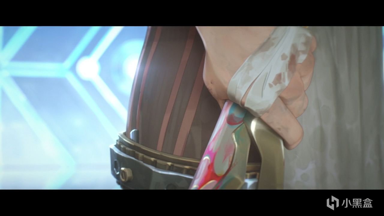 这里萨罗触碰这个核心后激发的能量,杰斯下意识的反应就是防御与准备攻击。这是游戏里准备出锤的姿势。又给了个握锤子特写,可以看成听完这些话已经打算杀人了。既是下意识起手,又是真打算这么做。