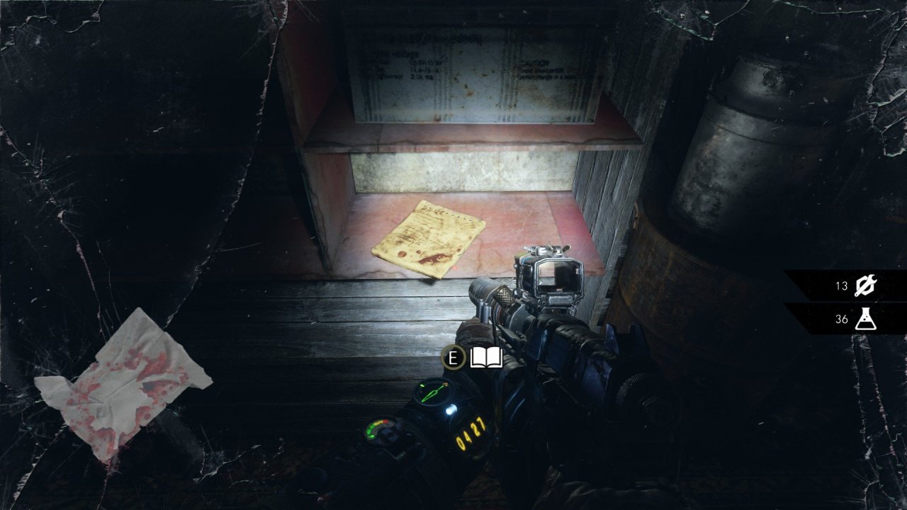 4.道德點3+筆記(摺疊的信件)15/70+裝備(彈藥袋)+武器槍配件