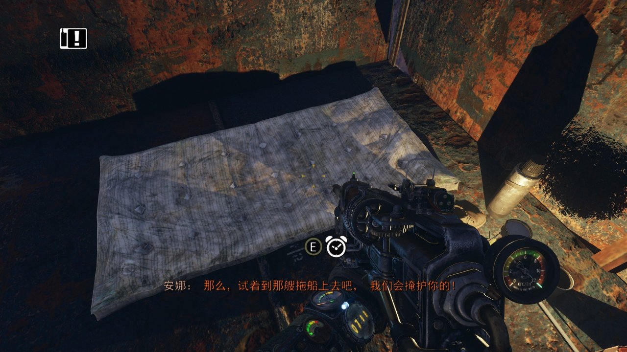回到“曙光號”後我們引來了最終一站,來到起重機後我們一定要睡到晚上方便我們潛行!