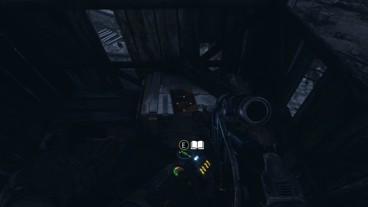 繼續開列車,在我們的左前方頂部的木屋裏有我們的筆記和武器槍配件