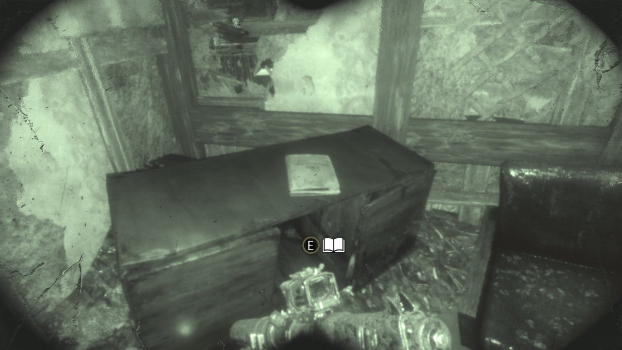 在工廠內部,拿上我們的夜視儀配合高倍瞄準鏡和防毒面罩,在工廠裏我們就能通過殺敵三個獲得成就,然後在控制室將“大鯰魚”引來殺掉獲得成就。控制室還有我們的筆記,以及屍體上有我們的武器槍配件!