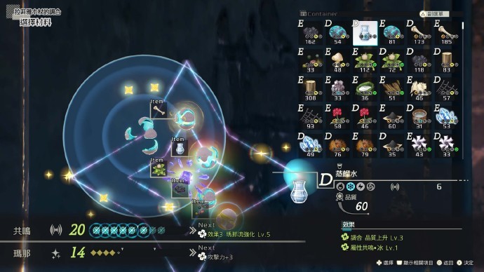 調合系統中,玩家可通過操控瑪那,利用鍊金術製造出全新物品。