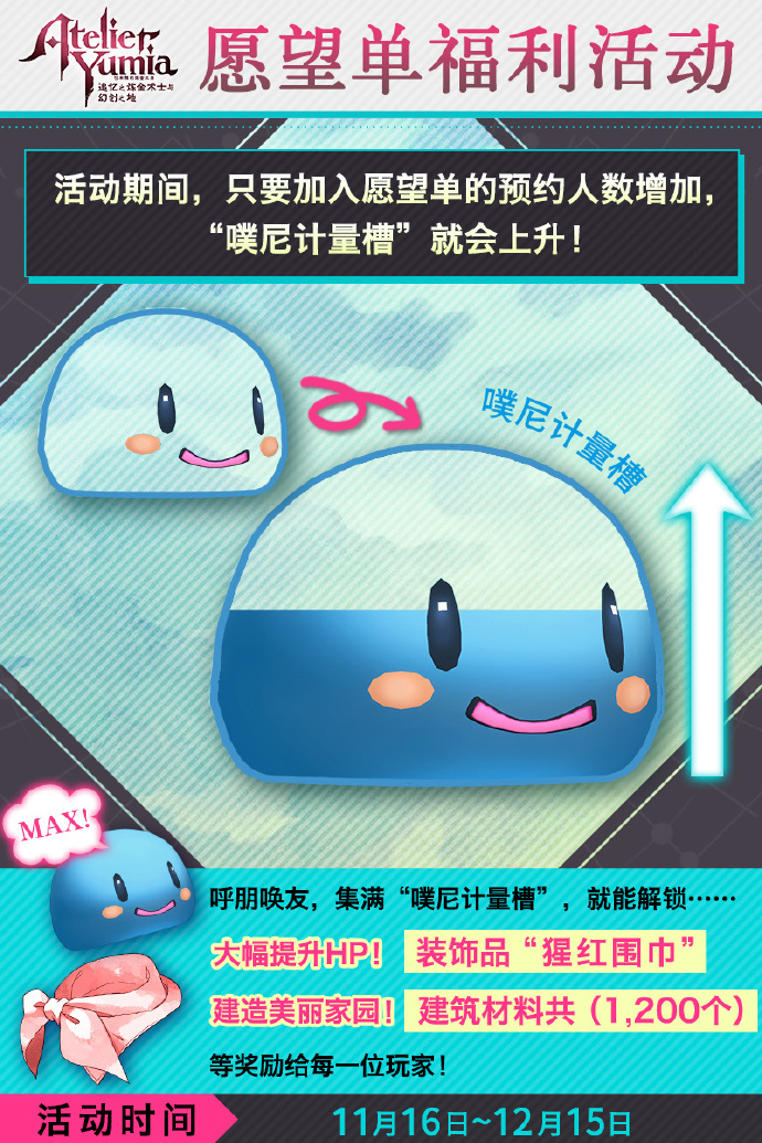 在活動期間,只要將《優米雅的鍊金工房》加入Steam/PS/Xbox願望單,預約人數就會增加,隨之而來的“噗尼計量槽”也會不斷上升哦!