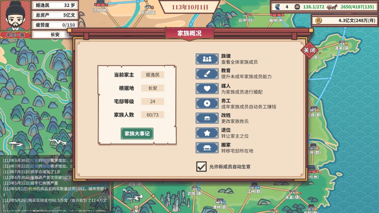 中华一商是一款很不错的游戏,你将扮演商人到处跑商赚差价获取利润,并开拓商队,逐渐发展壮大成为中华一商,还可以在家族开枝散叶。