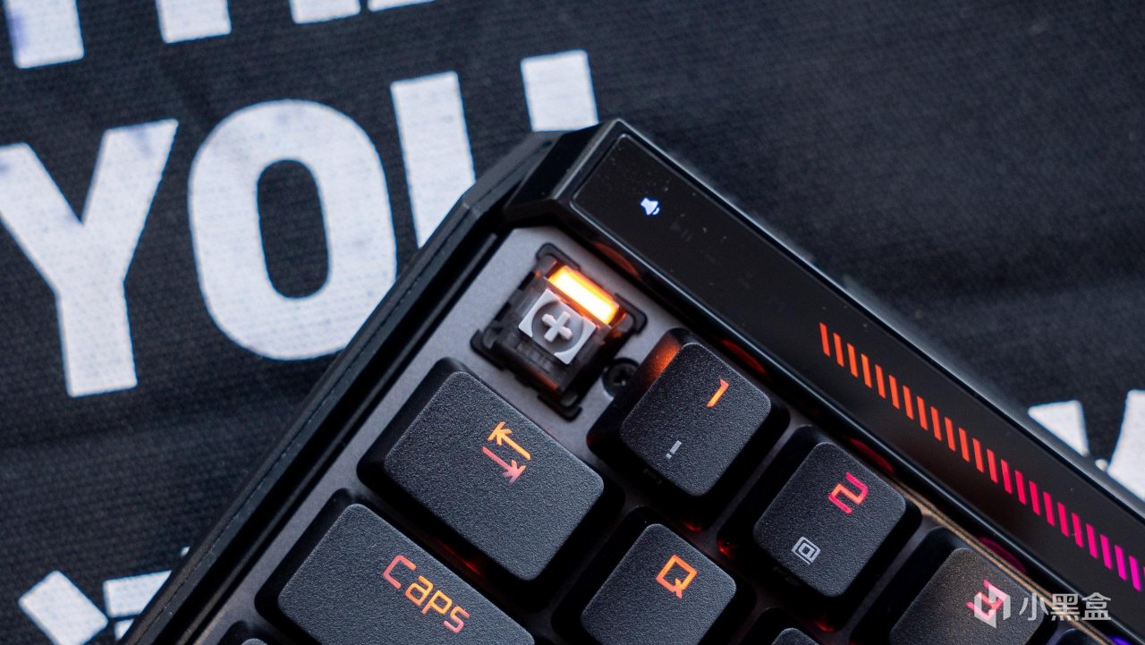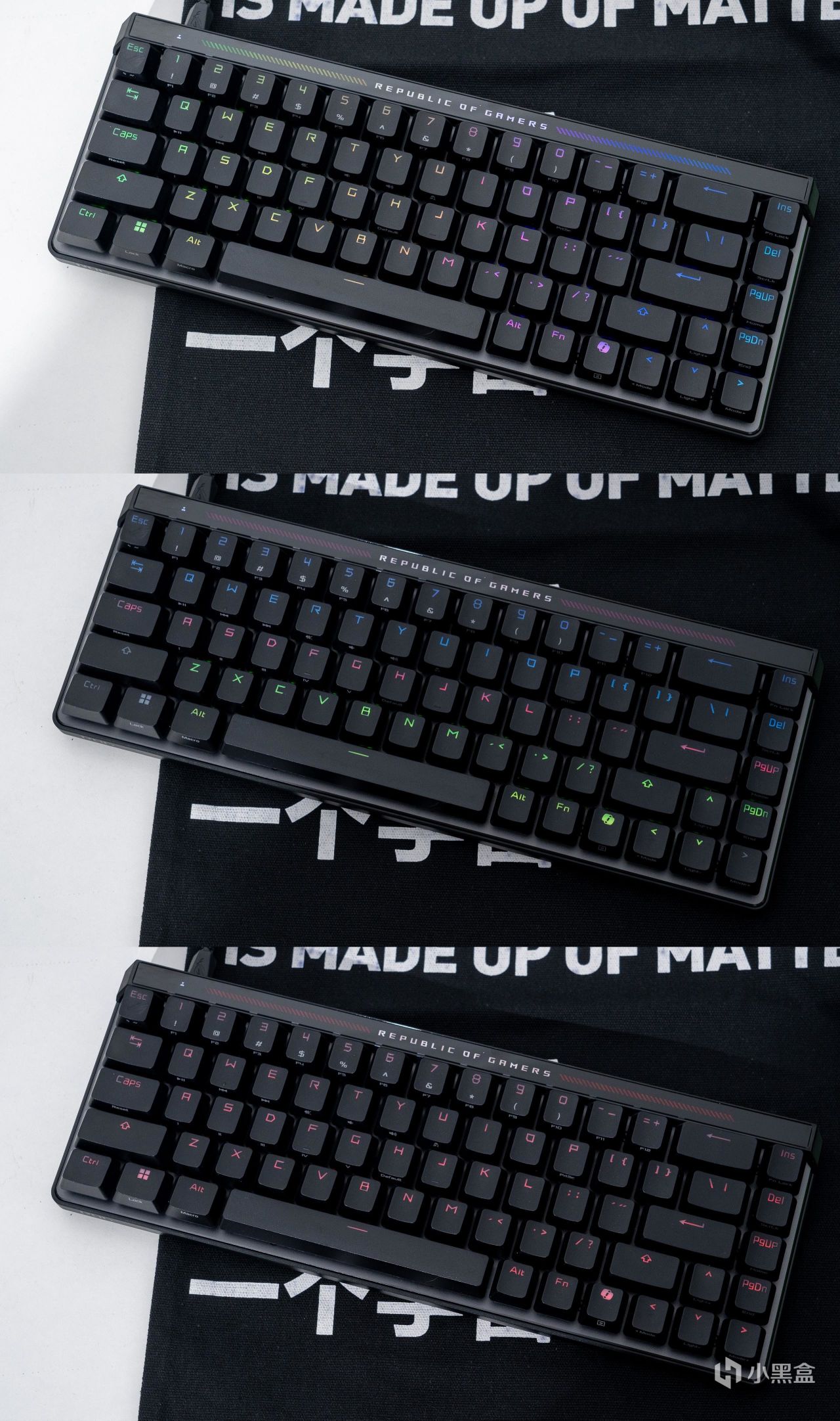 通电之后的灯光效果依旧是华硕ROG键盘的亮点,键帽整体透光均匀而且支持华硕全家桶的神光同步功能。