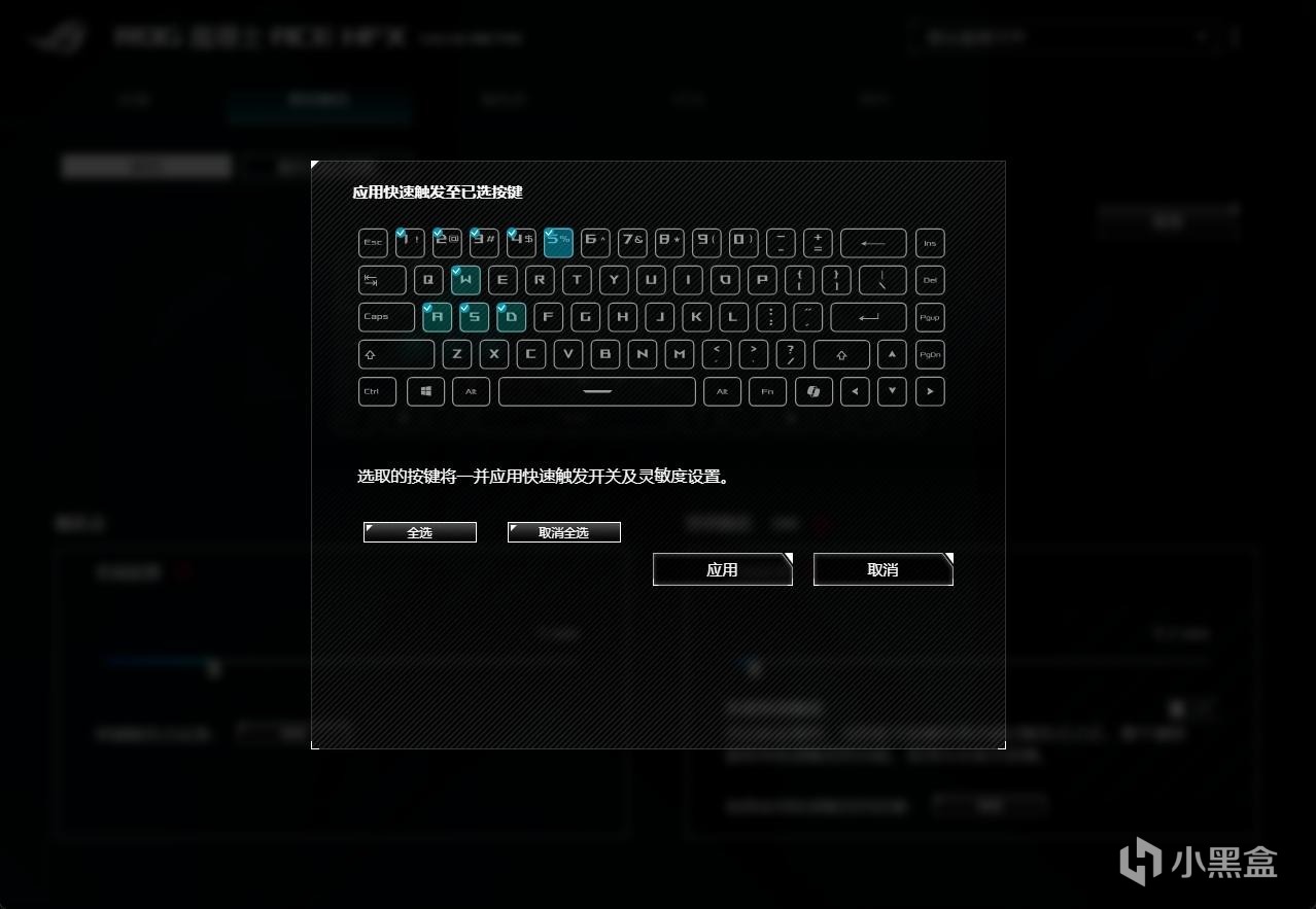 默认RT开关开启后可以实现快速的WASD键的快速触发功能,默认下只有针对WASD四个键位的快速触发,实际也可以根据游戏不同设置针对性的快速触发。