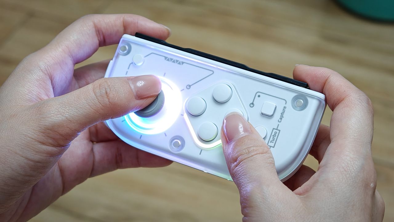 手柄背面搭載了兩顆可自定義功能的背鍵,在上方卡扣位置還有燈光的快速調整按鈕,再也不用複雜的組合鍵操作,或者打開APP調節,可真的是太方便啦!
