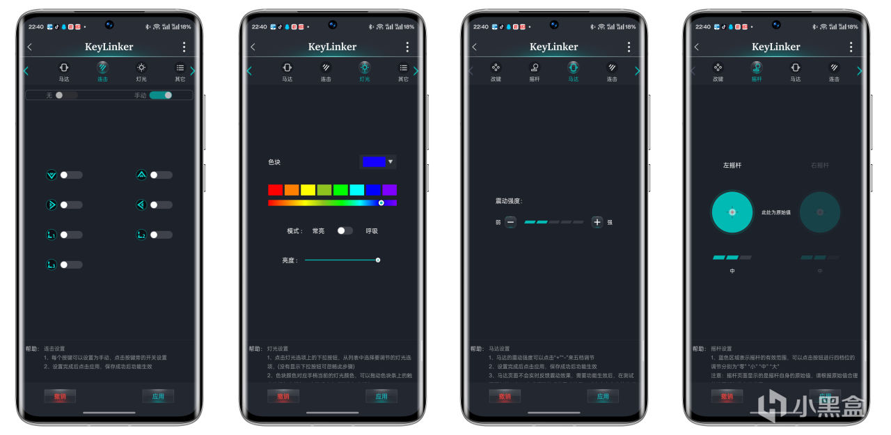 澳加獅 J20還支持 keylinkerAPP對手柄按鍵,搖桿,馬達,燈光等參數進行設置