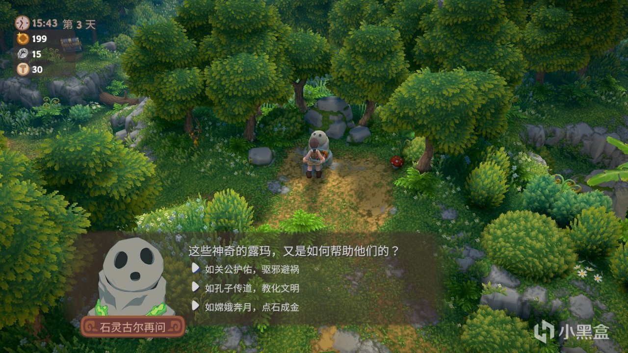 这样的例子还有很多很多,另外一处玩家会发现一个石像,互动后其会讲解露玛岛的历史,喜欢跳对话的小伙伴要注意了,讲完后其会开始问问题,全都回答对的话也可以获得一个宝箱。