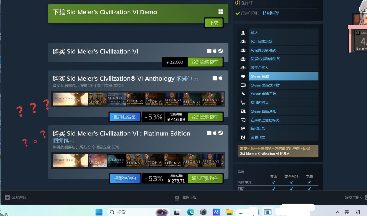 下圖是steam文明6的商店頁面,話說,還剩的那些捆綁包是幹什麼的呀?