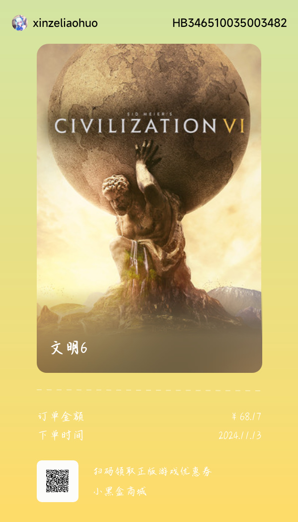 還有個原因就是小黑盒的券快到期了,最遲到3點就會到期,時間不允許我過多考慮,在我又逛了一會文明6社區後,發現很多人也入手了,於是我當即立斷去充值餘額(36塊)。