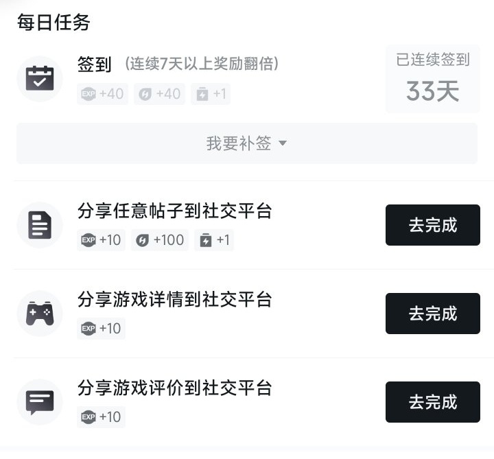 2.每日任務:簽到(0點登錄小黑盒自動簽到)和日常任務(很簡單,點分享跳轉到微信界面再退回來就行,不用真的分享)