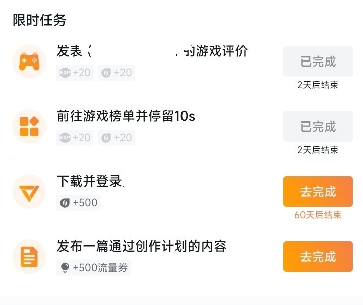 3.限時任務:每週隨機性發布,有時新玩一款遊戲後也會發佈一個限時任務,按要求完成即可。