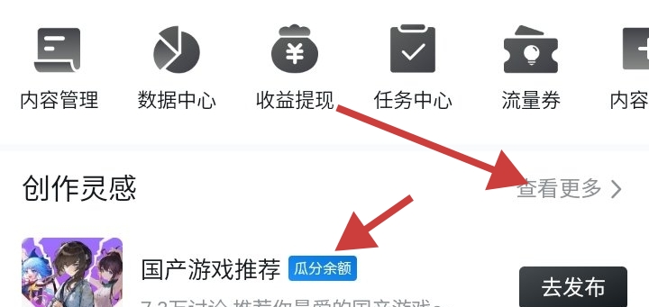 可以點“我”,再點“創作中心”,下滑就能看到“創作靈感”,點擊更多。