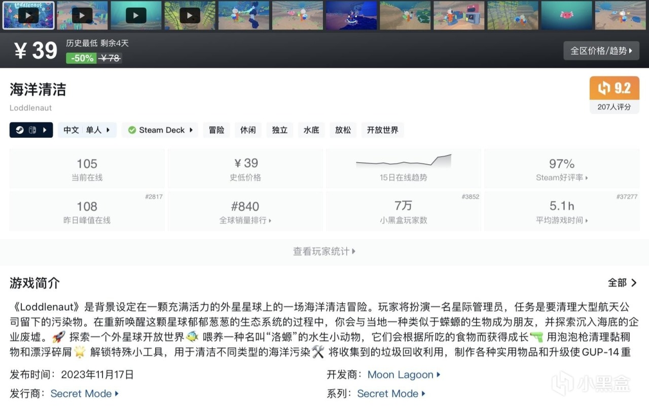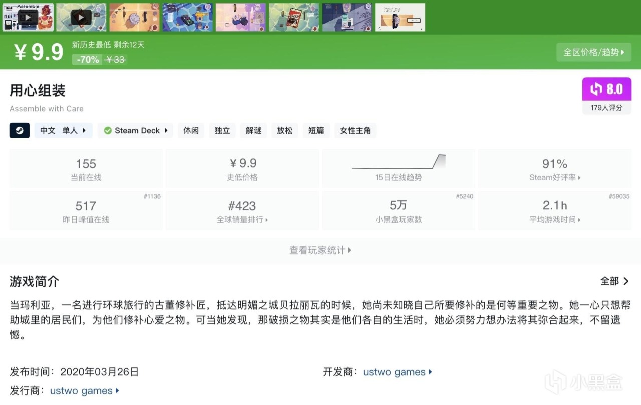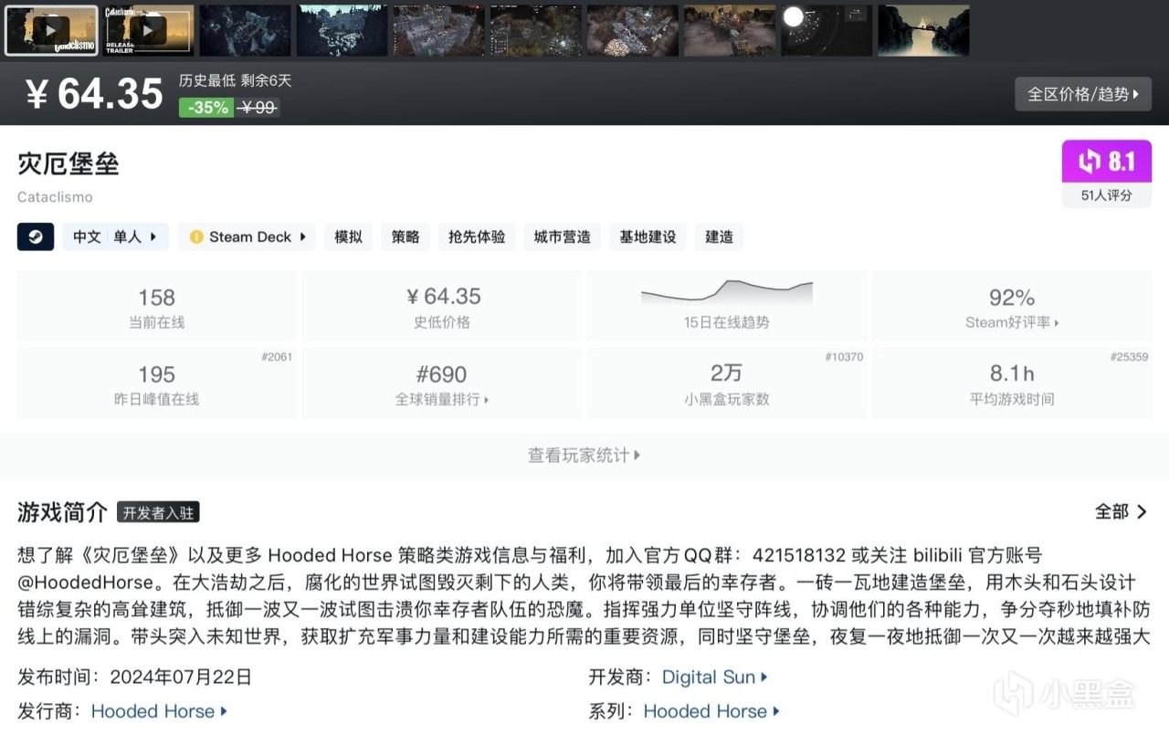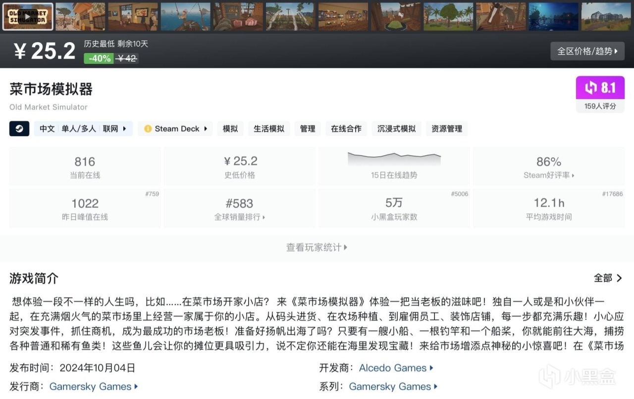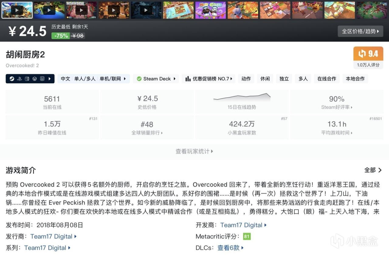 本篇並不都是烹飪類遊戲,大多數能夠查找到且處於史低期間的高分優質遊戲都會被收錄進來~