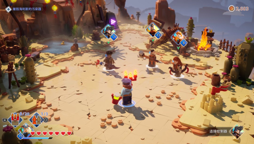 咱们有一说一,埃洛伊这脸搁在乐高小人上面简直再合适不过了,直接变成经典圆柱形脑袋,塞伦斯的脑袋这下也是尖尖的了。地平线系列当时的画质就十分突出,乐高地平线与前作相比,画面也有了质的飞跃。柔和的光影、细腻的色彩,在保留原作画面风格的同时又融合了乐高元素。人物模型则完全仿照实际的乐高去建模,还加上了水纹和拼接纹,让人有些分不清游戏和现实。动作更像是乐高大电影,偏向实际玩具的表现,不像是前几作只是套了个乐高的皮,遇到复杂动作时还会变形。