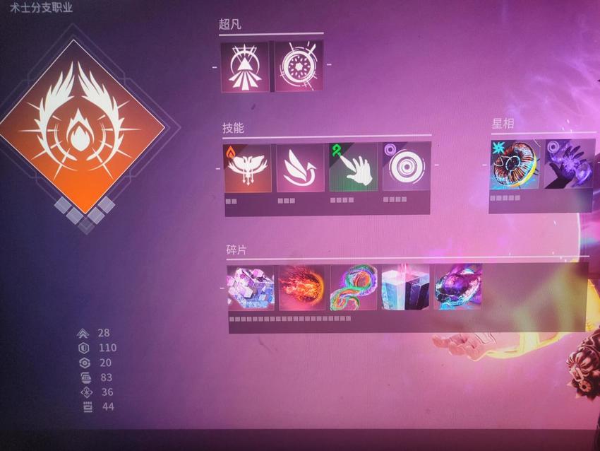 碎片方面選擇覺醒琢面,光明飛蛾可以產粒子軌跡幫助技能迴轉,黎明琢面使近戰後獲得煥光,進一步拉高堡壘的傷害,同時還能反屏障,使命琢面前文說過,剩下的兩個欄位自由選擇,我選擇統御琢面配合虛空手雷給怪堆上削弱,平衡琢面稍微拉一點回轉。