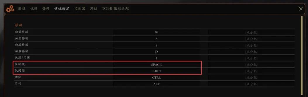 【跳躍/閃避】建議取消(設置爲小鍵盤1)